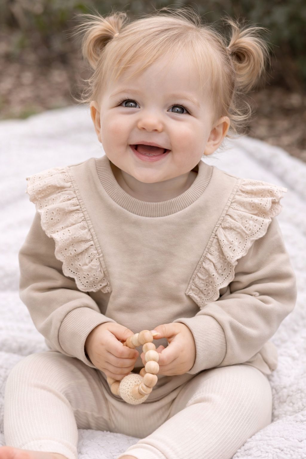 BUZO FRISADO BEBA CON BRODERIE BEIGE
