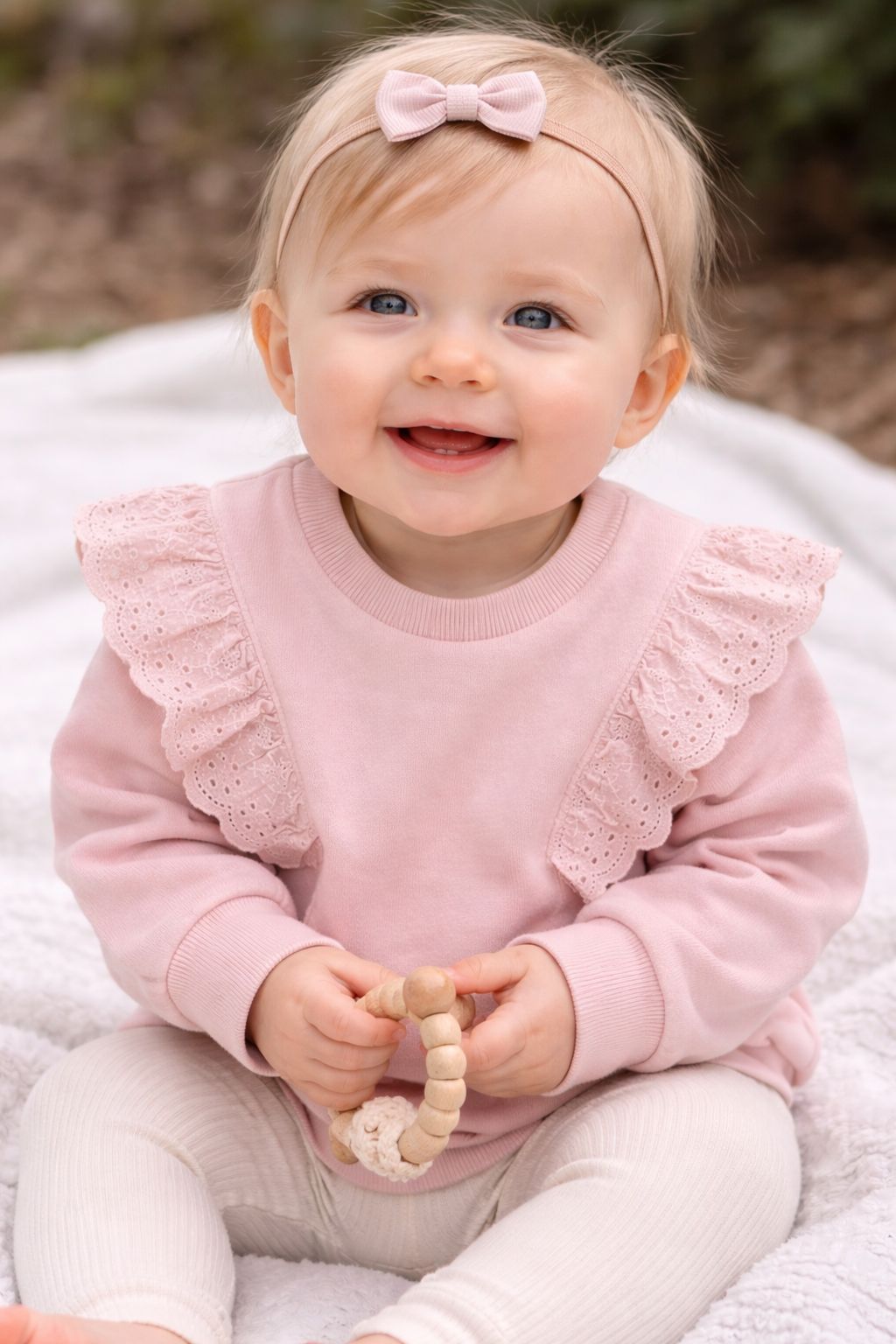 BUZO FRISADO BEBA CON BRODERIE ROSA