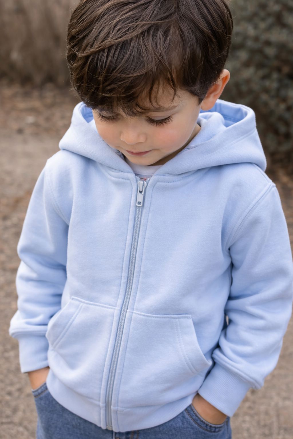 CAMPERA CANGURO CON CAPUCHA FRISADA CELESTE
