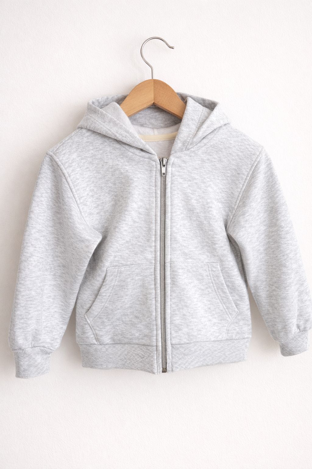 CAMPERA CANGURO CON CAPUCHA FRISADA GRIS MELANGE