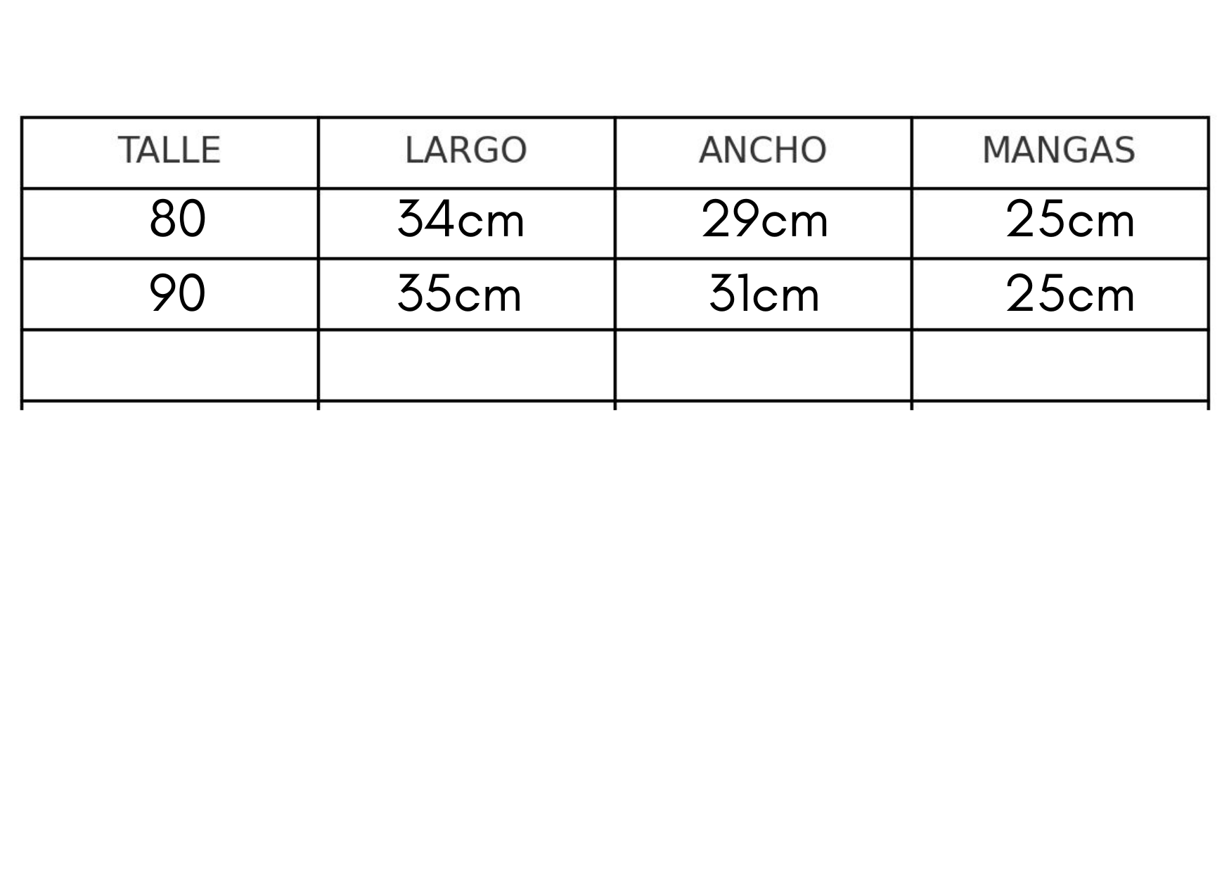 | Talle | 80 – 9-12 meses, 90 -18-24 meses |